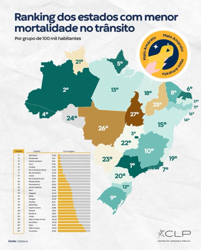 O Acre figura entre os estados brasileiros com as menores taxas de mortalidade e morbidade no trânsito, de acordo com os dados mais recentes divulgados pelo Centro de Liderança Pública (CLP), com base no Sistema de Informações sobre Mortalidade (SIM) e no Sistema de Informações Hospitalares (SIH), ambos do Departamento de Informática do Sistema único de Saúde (Datasus).