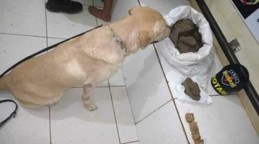 Devido a precisão da denúncia, os militares pediram o apoio ao canil do BOPE. O cachorro Dante foi levado ao local e conseguiu encontrar cerca de 2,5 quilos de drogas enterradas no quintal da casa.