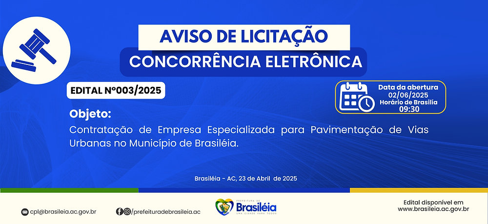 CE Nº003/2025 – Aviso de Licitação Source link Compartilhe isso: Clique para compartilhar no Facebook(abre em nova janela) Facebook Clique para compartilhar no X(abre em nova janela) 18+ Clique para compartilhar no WhatsApp(abre em nova janela) WhatsApp Curtir isso:Curtir Carregando... Navegação de Post Mais de 20 toneladas de peixe devem ser comercializadas em Brasiléia durante a feira do Peixe 2025 Prefeitura de Brasileia prestigia posse da nova delegada da PF na fronteira