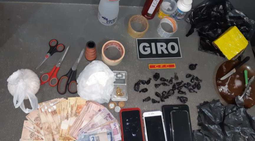 Militares do Grupo de Interversão Rápida Ostensiva (GIRO) realizavam patrulhamento quando avistaram uma mulher e dois homens vendendo drogas em via pública. O trio tentou se evadir, mas acabou detido com uma pequena quantidade de merla (cocaína).