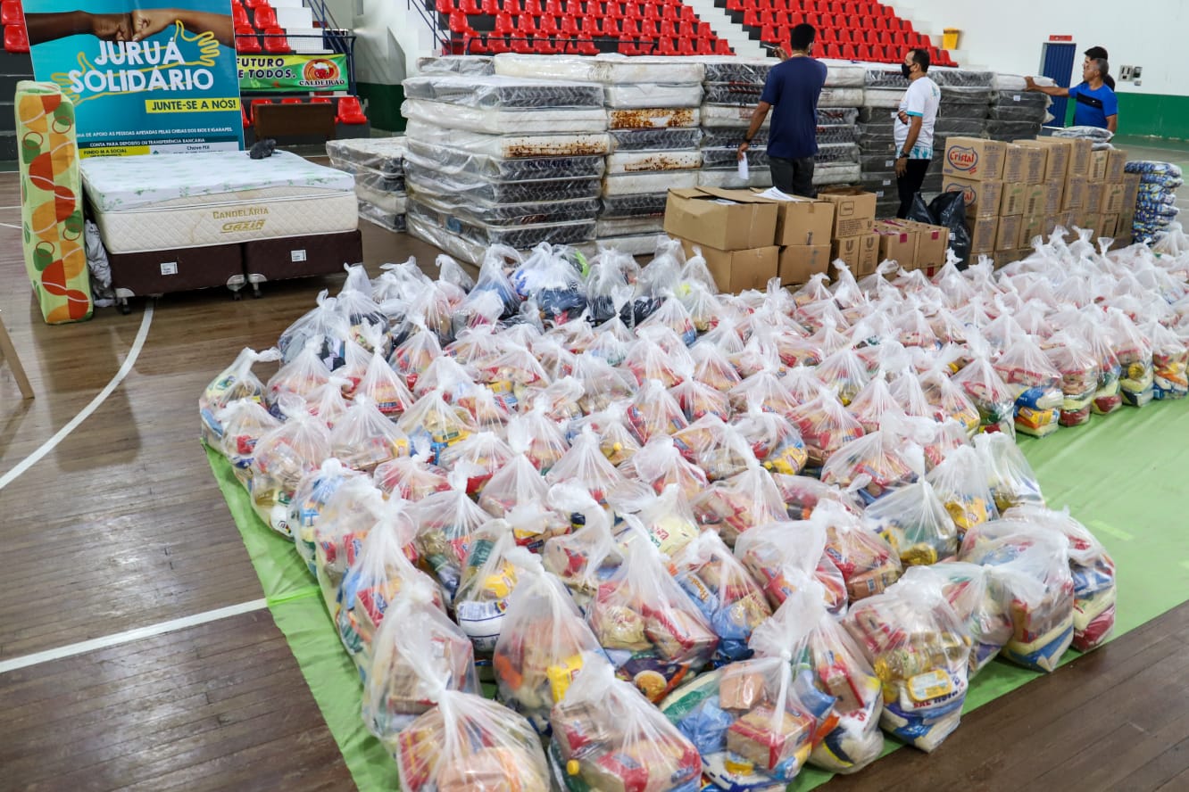Aproximadamente 10,5 toneladas de alimentos foram entregues ao município, além de kits de higiene pessoal contendo sabonetes, álcool em gel e máscaras, kits de limpeza e colchões. A Secretaria de Estado de Saúde (Sesacre) também enviou hipoclorito de sódio, para o tratamento da água.