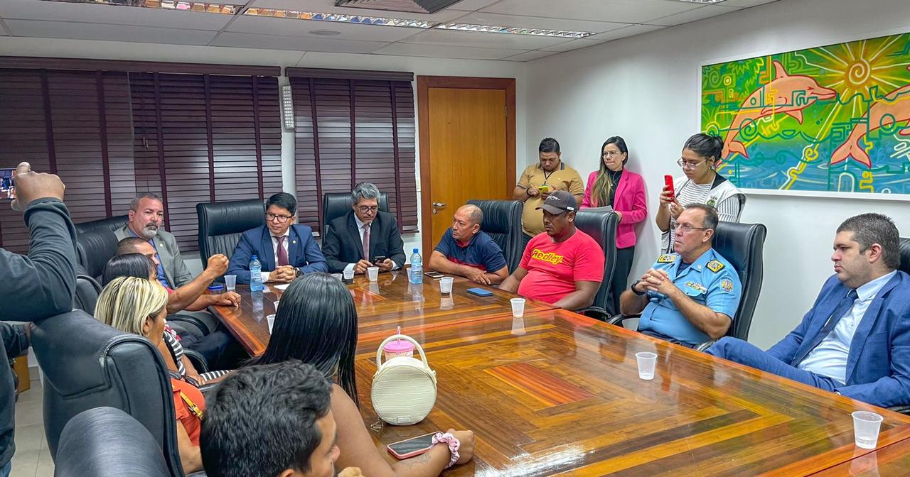 Os deputados Edvaldo Magalhães e Nenem Almeida, também participaram da reunião, além do comandante da PM, coronel Paulo César Gomes, o secretário de Planejamento, coronel Ricardo Brandão, o chefe da Casa Civil, Jonathan Donadoni, e o diretor jurídico do Instituto de Terras do Acre (Iteracre), Leandro Simão.