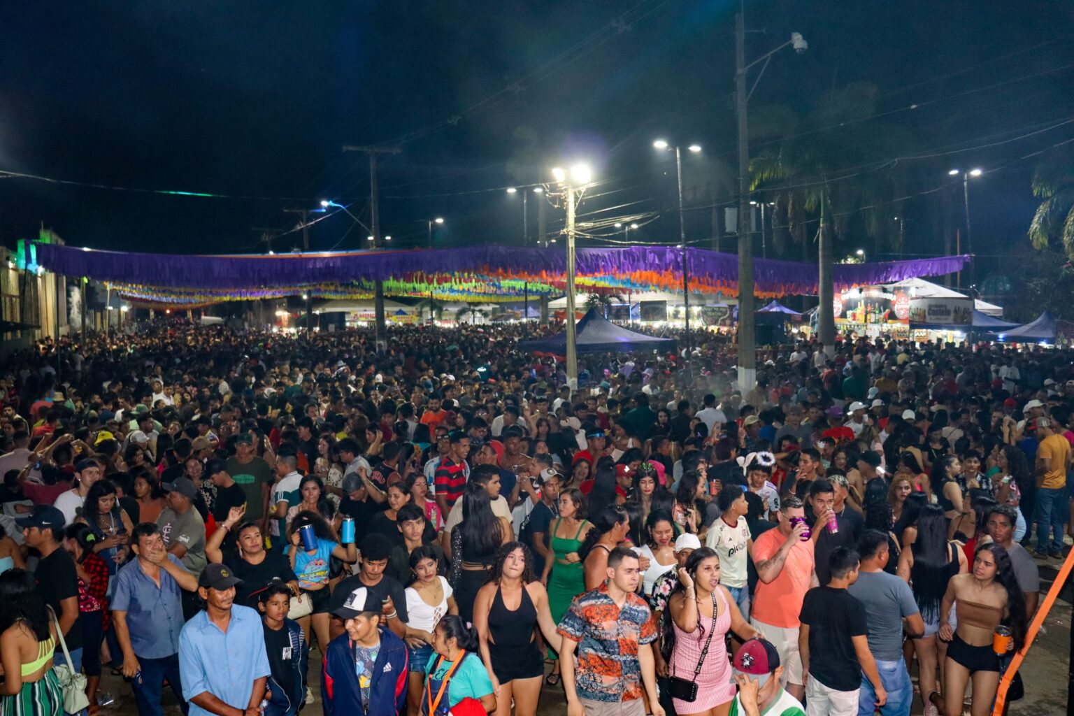 A praça Hugo Poly foi pequena para milhares de brincantes que compareceram para se divertir na segunda noite de festa do carnaval fora de época de Brasiléia.