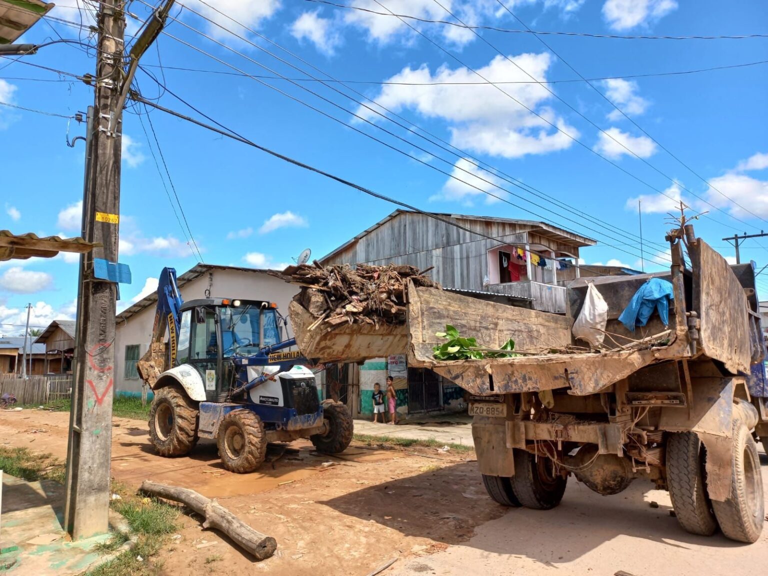O governo do Estado, por meio do Departamento de Estradas de Rodagem do Acre (Deracre) e em apoio à Prefeitura de Tarauacá, auxilia na operação de limpeza pós-enchente no município.