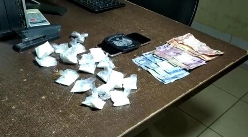 Policiais militares do 3° Batalhão estavam em patrulhamento de rotina, quando avistaram os dois em via pública em atitude suspeita. Ao fazer a abordagem foi encontrado 15 papelotes de pasta a base de cocaína e 62 reais em espécie.