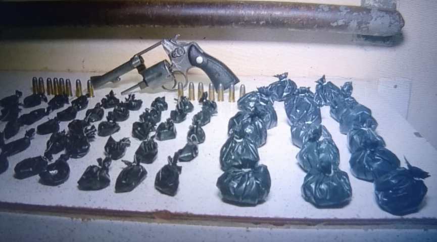 Ao chegar no local denunciado, os militares avistaram o jovem na frente da casa em atitude suspeita, que ao avistar a guarnição se descartou em uma área de mata 20 trouxinhas de cocaína, mas os PMs perceberam e conseguiu recuperar a droga. Na revista pessoal, os militares encontraram, na cintura do acusado, um revólver calibre 38 com 15 munições intactas.