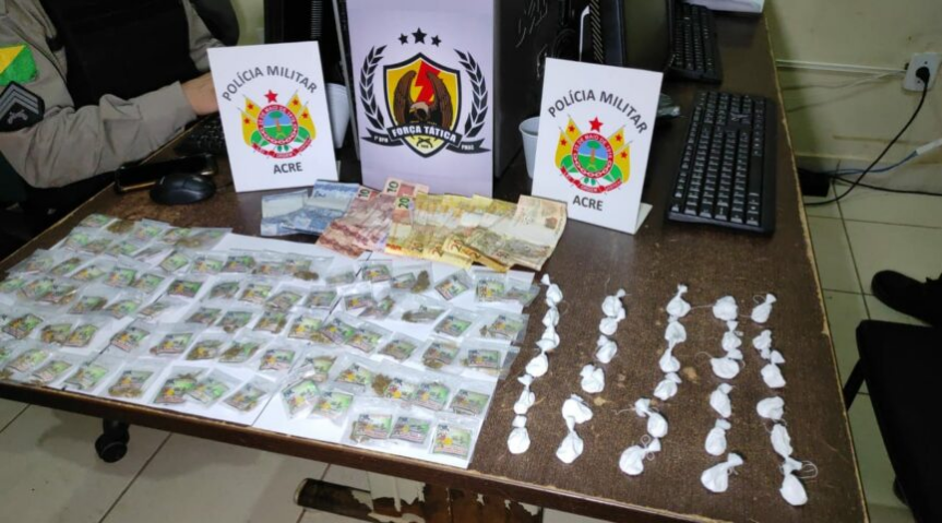 Uma mulher de 30 anos foi presa por tráfico de drogas, na noite desta quarta-feira (23), no Beco da Cacimba, no bairro Esperança, em Rio Branco.