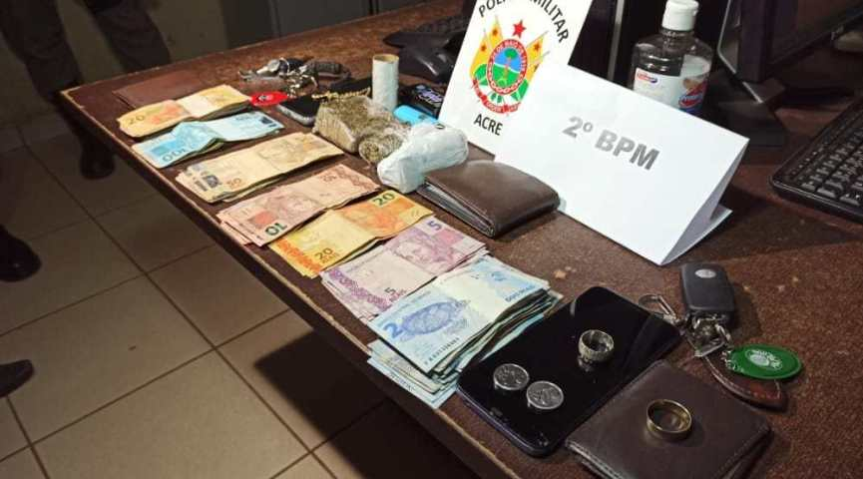 Foram encontradas 3 barras e 3 tabletes de maconha, totalizando 360 gramas dos entorpecentes e uma quantia de R$ 1.460,00 em espécie.