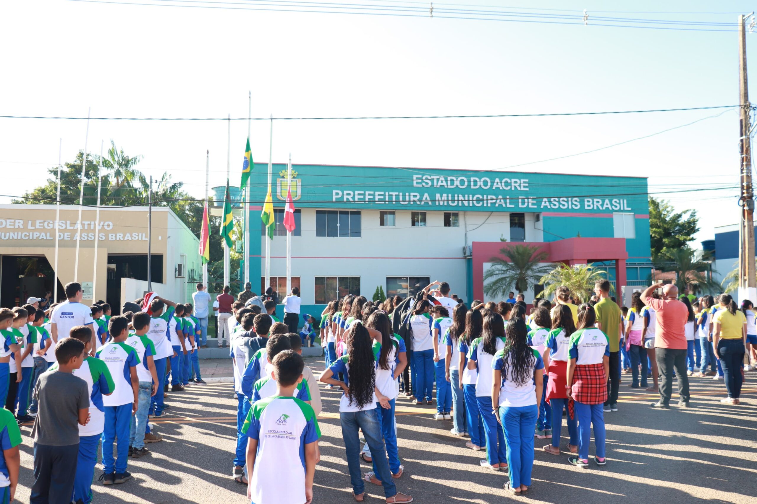 O Prefeito de Assis Brasil Jerry Correia, juntamente com o Vice-prefeito Reginaldo Martins, receberam as autoridades, gestores das escolas e estudantes para a abertura da última semana de programação em alusão ao aniversário de 48 anos de fundação do município de Assis Brasil.
