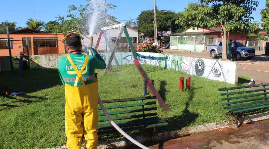 O objetivo é fazer uma lavagem e desinfecção com produto apropriado, para evitar a contaminação, principalmente nos locais de grande circulação de pessoas.