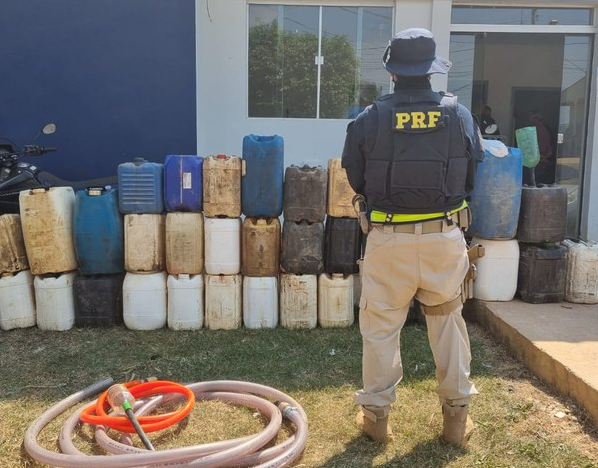 A Polícia Rodoviária Federal apreendeu neste domingo (15) cerca de 280 litros de combustível armazenados e vendidos ilegalmente em um ponto comercial da BR-364, em Senador Guiomard.