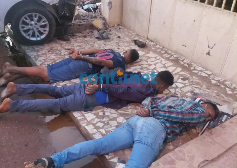 Uma guarnição da Força Tática do 1º Batalhão da Polícia Militar acompanhou os suspeitos até o bairro João Eduardo II. O condutor perdeu o controle do carro durante a perguição, na Travessa Hosana Carneiro, e bateu no muro de uma casa.