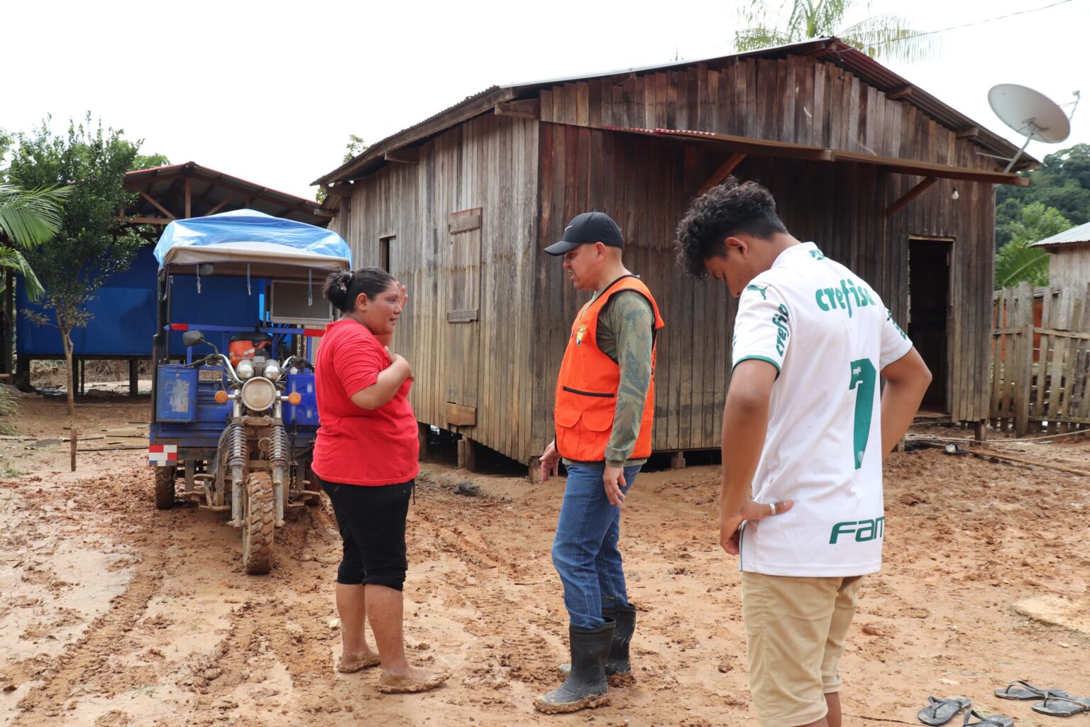 As famílias estão recebendo kits de limpeza e orientações sobre saúde nesse período de vazante.