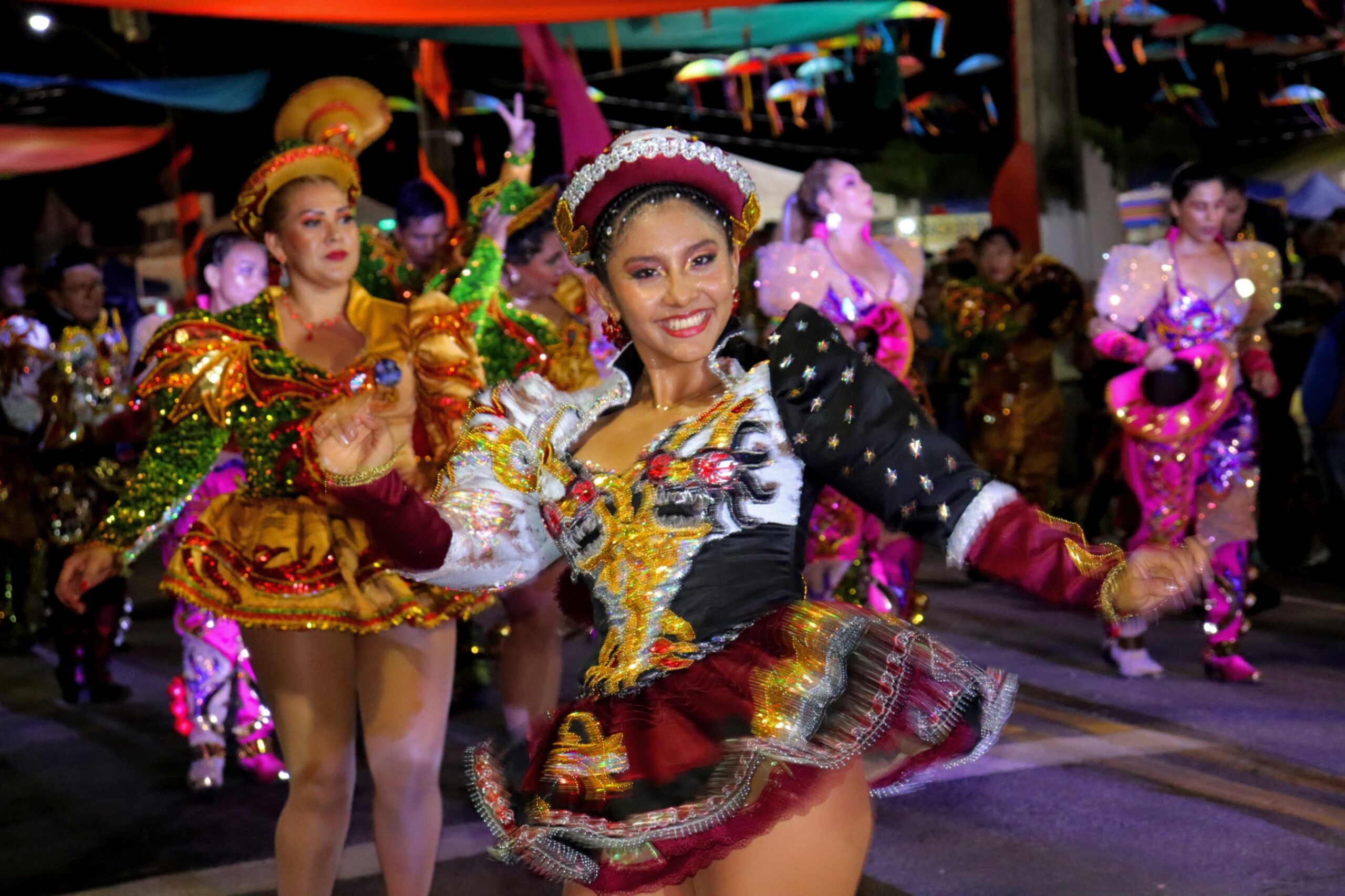 Alegrando ainda mais o Carnaval da Fronteira, os grupos carnavalescos de Cobija Pando Bolívia, Las Negras e os Los Coporales San Simão, trouxeram muita alegria e cultura boliviana para a praça carnavalesca Hugo Poli na noite desta segunda-feira 12, durante a quarta noite de carnaval.
