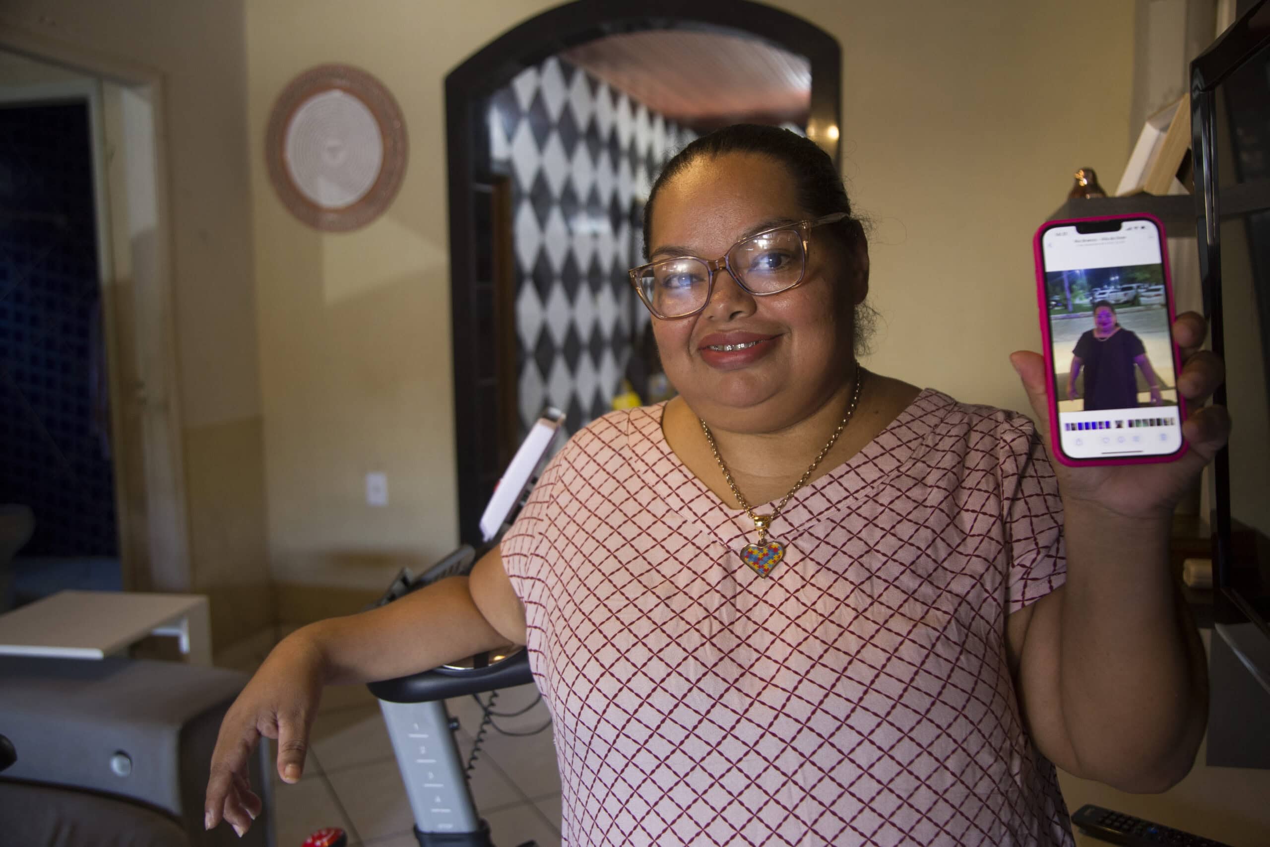 “Durante a pandemia eu engordei bastante, cheguei a ultrapassar os cem quilos. Foi nesse momento que resolvi pensar em mim e fui atrás de me cuidar. Eu estava com dificuldade para trabalhar, porque cuido de uma criança atípica, e aquela situação estava sendo um empecilho”.