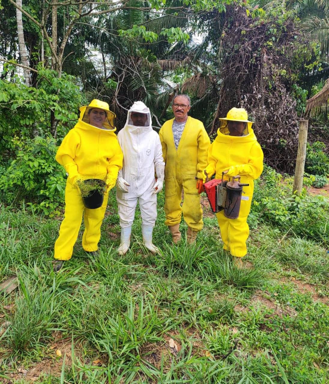 Dentre as ações desencadeadas para fortalecimento da cadeia produtiva do mel, foram oferecidas orientações técnicas sobre boas práticas e manejo de pragas, captura de enxame, colheita de mel, além de uma avaliação detalhada da situação atual de cada produtor local.