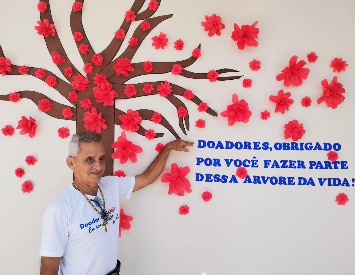 Genésio Bastos Alves, doador de sangue, há 19 anos, desde 2005, doador fidelizado. “Manifesta sua alegria e satisfação, emocionado enfatiza que se orgulha em ser um doador atuante e regular nas suas doações anuais”.