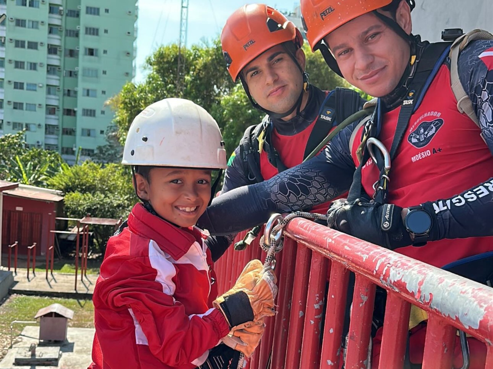 “Trouxemos o Luan para conhecer um pouco da nossa profissão, fazer algumas atividades, inclusive tirolesa. Hoje está sendo um dia muito especial para a gente, em recebê-lo aqui na nossa instituição”, disse a capitã Mirla, que acompanhou a visita.
