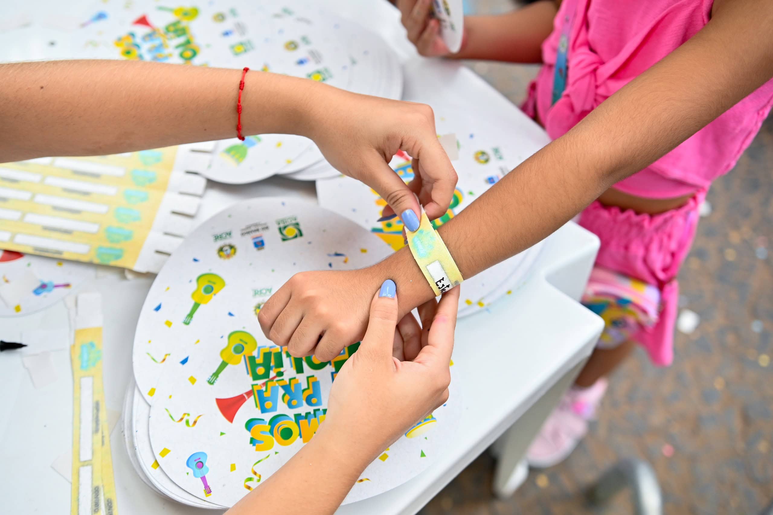 Para garantir a segurança dos foliões, a organização do Carnaval da Família está inserindo pulseiras de identificação em todos os menores de 18 anos que adentram no espaço reservado para o evento.