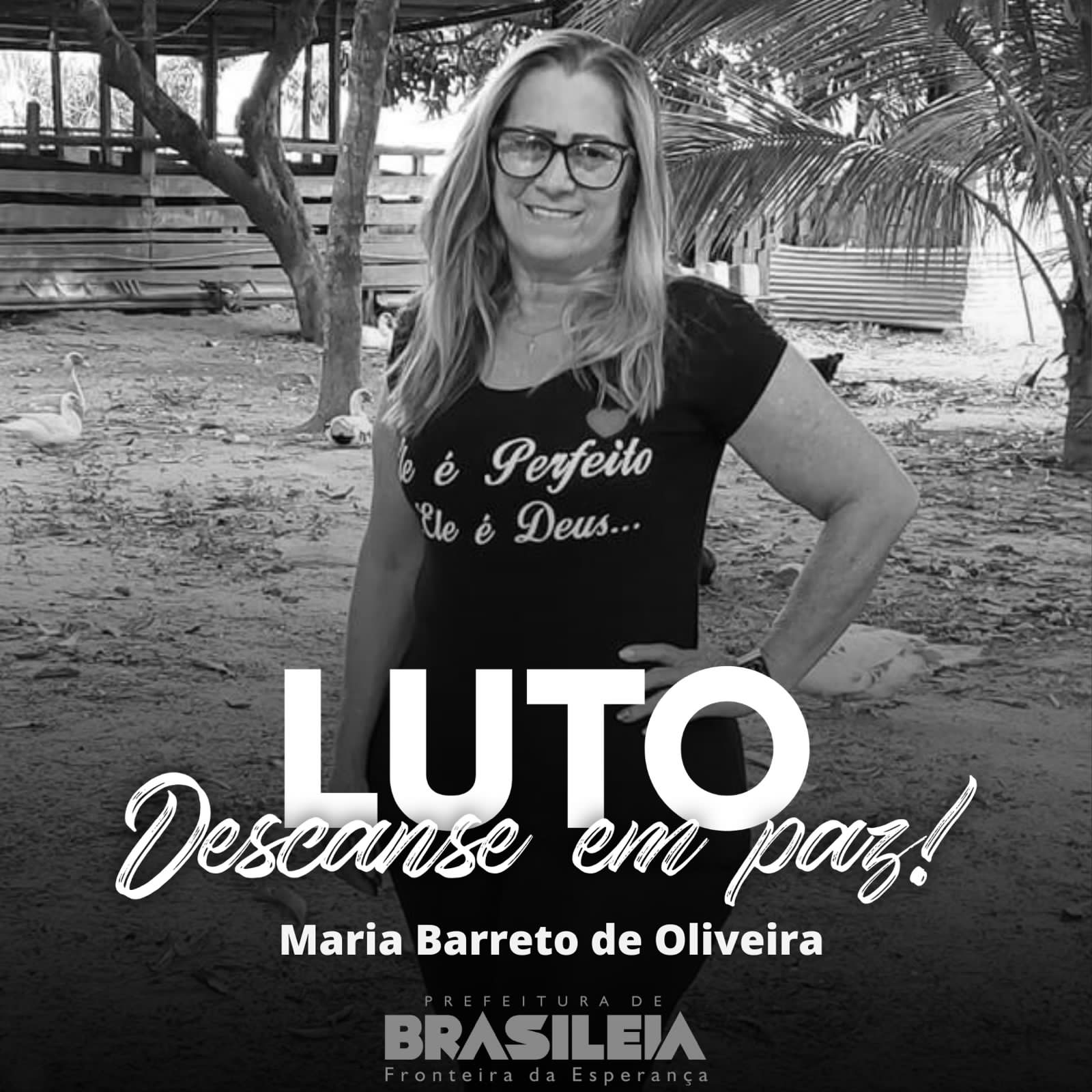 É com tristeza e pesar que a Prefeitura de Brasiléia, em nome da Prefeita Fernanda Hassem e do Vice-prefeito Carlinhos do Pelado, presta suas condolências aos familiares e amigos pelo falecimento da servidora municipal Maria Barreto de Oliveira, ocorrido de forma trágica na manhã desta segunda-feira, 31, na Avenida Manoel Marinho Monte, vítima de acidente de trânsito.