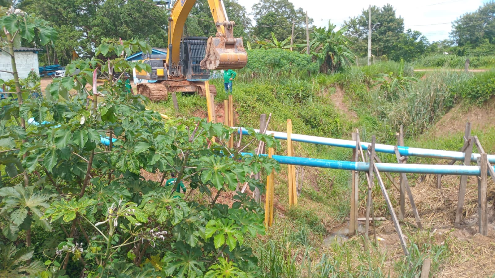 O governo do estado, em parceria com a prefeitura de Brasileia, está realizando melhorias no sistema de abastecimento de água para atender toda a cidade. De acordo com o gerente da Saneacre, Jorge Saady, a prefeitura emprestou a máquina PC para realizar os trabalhos e garantir o fornecimento de água tratada para a população.