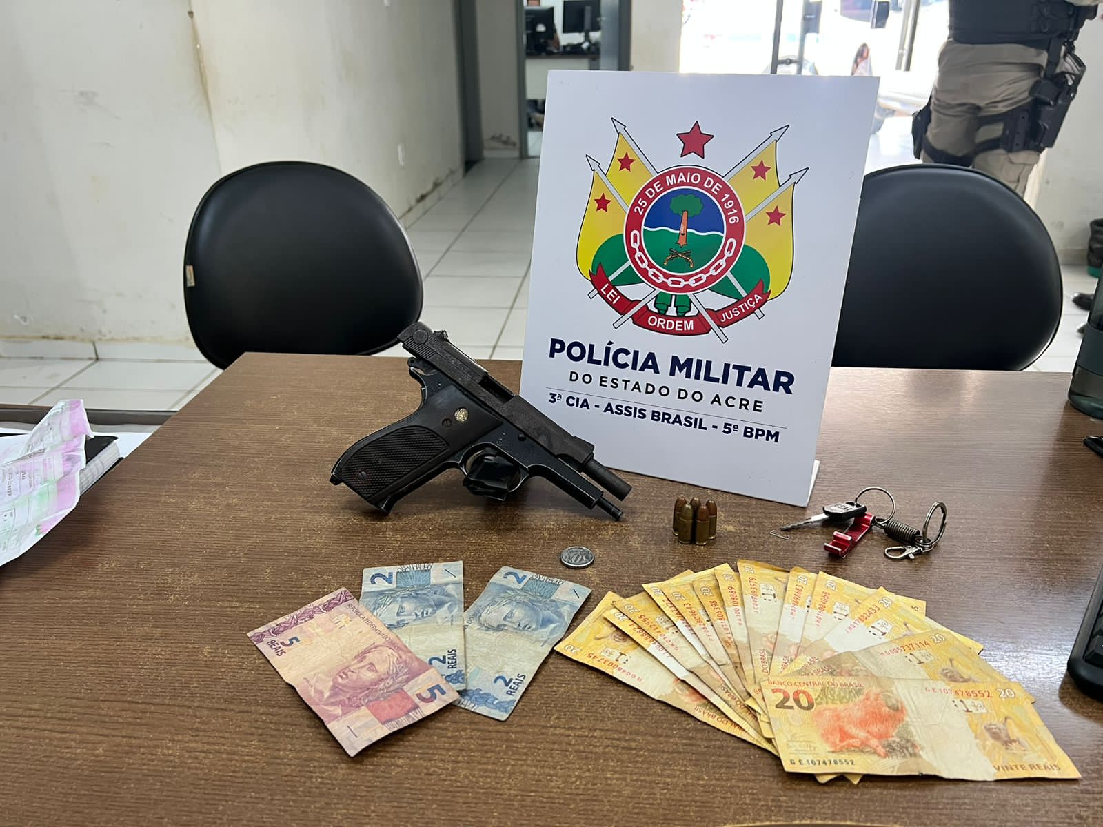 Policiais militares lotados na cidade de Assis Brasil acre realizaram a prisão de um homem por porte ilegal de arma de fogo, nessa quarta-feira, 12, no Bairro bela vista município de Assis Brasil . Ele é suspeito de ter praticado uma tentativa de homicídio contra membros de uma facção rival dias atrás durante a noite no bairro plácido de castro centro da cidade.