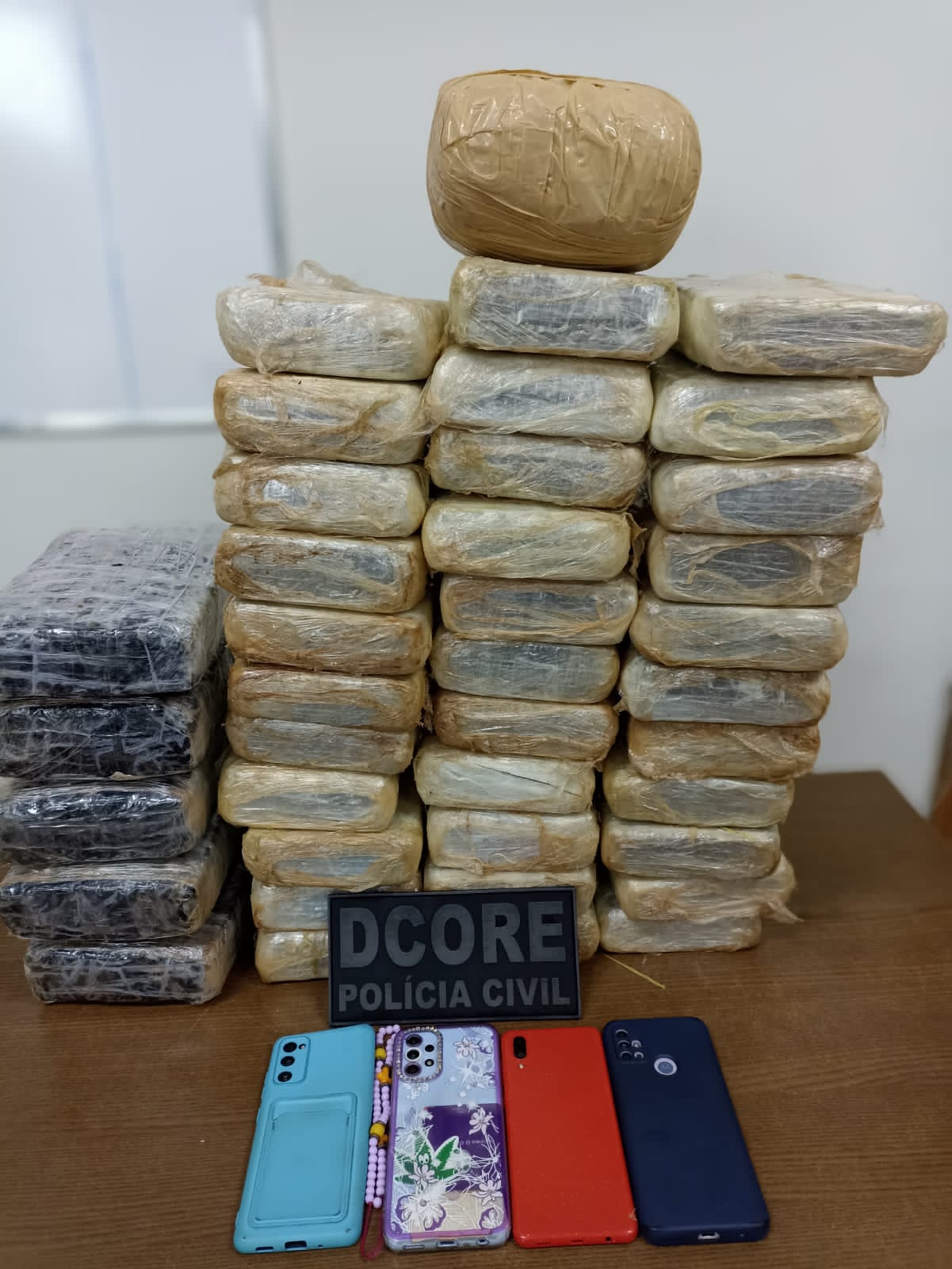 Após as diligências e acompanhamentos devidos, na madrugada de hoje a equipe interceptou o veículo modelo Voyage, conduzido por um taxista, transportando 43 kilos de substância entorpecente, aparentando ser maconha. A esposa do taxista que o acompanhava também foi detida pela Polícia.