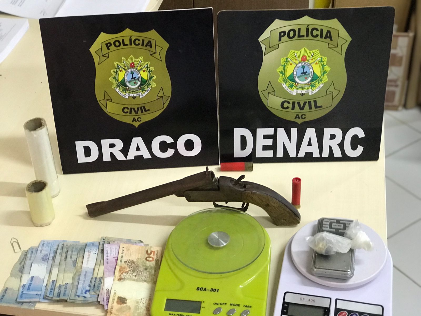 Na manhã desta quarta-feira, 5, a Polícia Civil por meio da Delegacia de Repressão ao Narcotráfico – DENARC e da Delegacia de Combate as Ações Criminosas Organizadas – DRACO, deram cumprimento a dois mandados de busca e apreensão no bairro Cidade Nova.