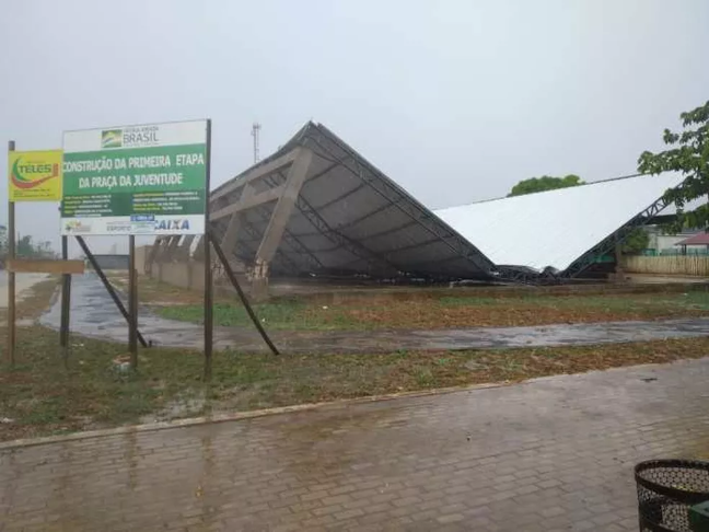 Vento forte derruba estrutura de ginásio em construção no interior do Acre — Foto: Alexandre Lima/Arquivo pessoal